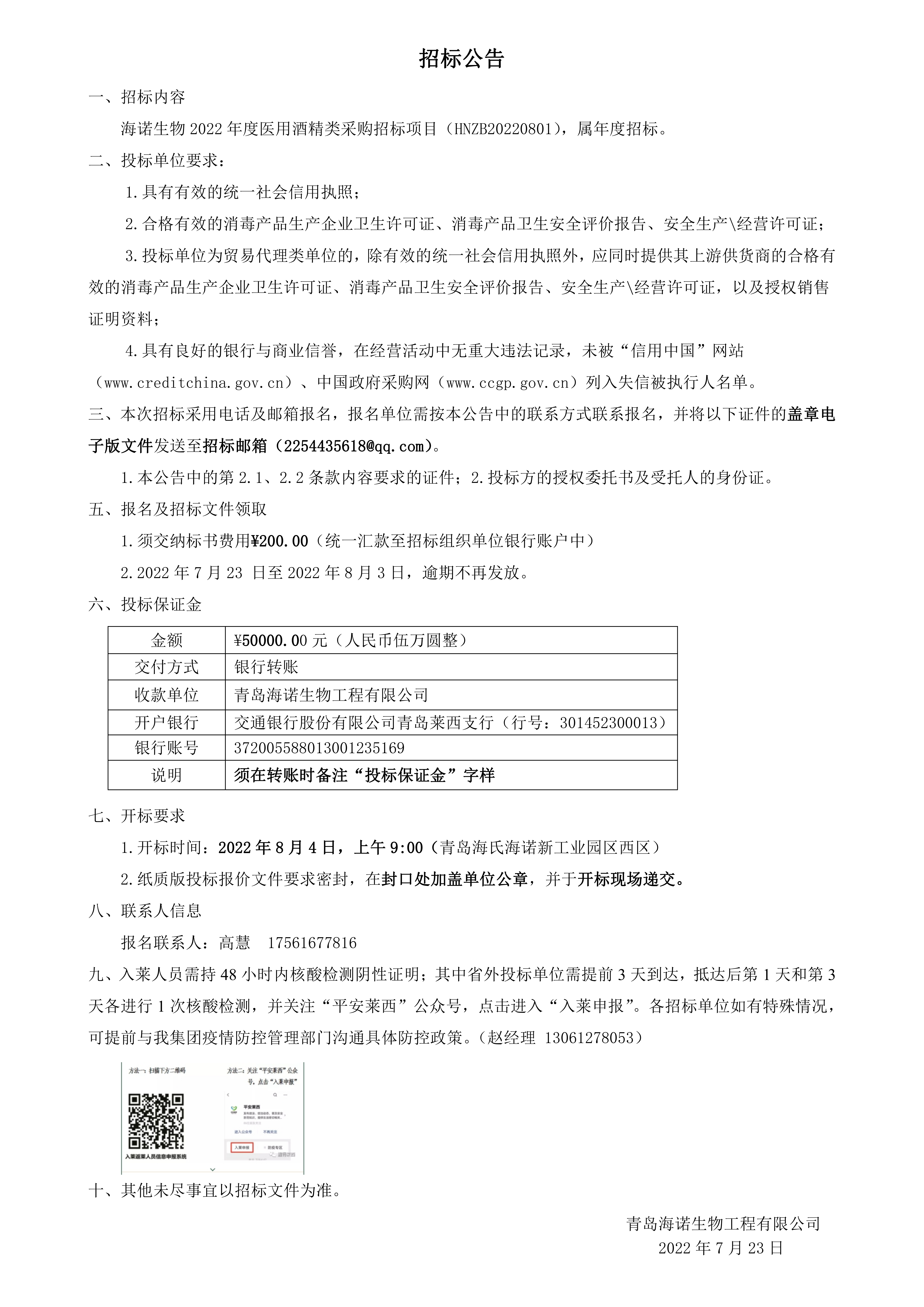 2022年度尊龙·Z6集团酒精类采购招标公告